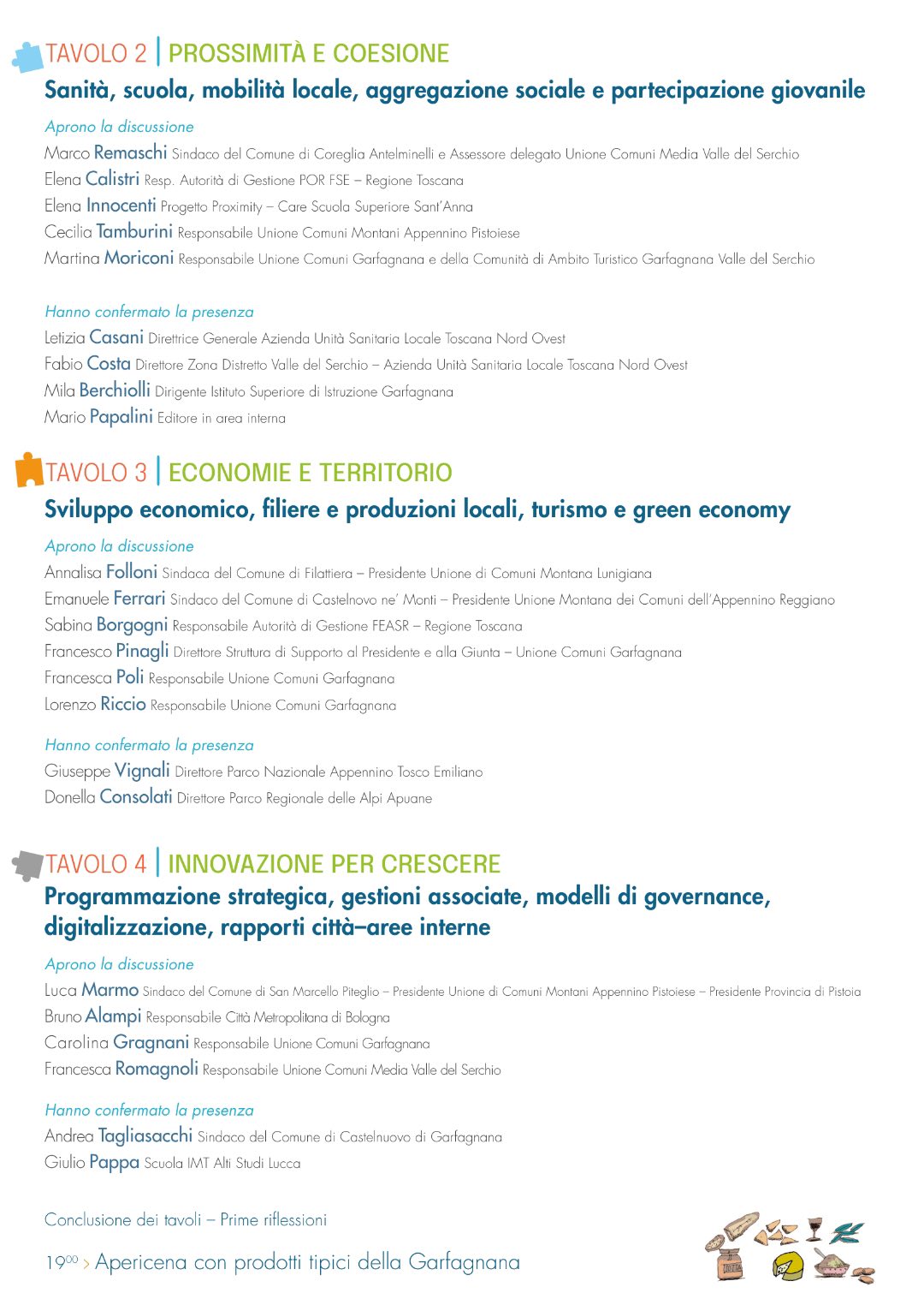 La giornata si concluderà con le prime riflessioni su quanto emerso dai tavoli e una successiva apericena a base di prodotti tipici della Garfagnana per i partecipanti che vorranno intrattenersi.