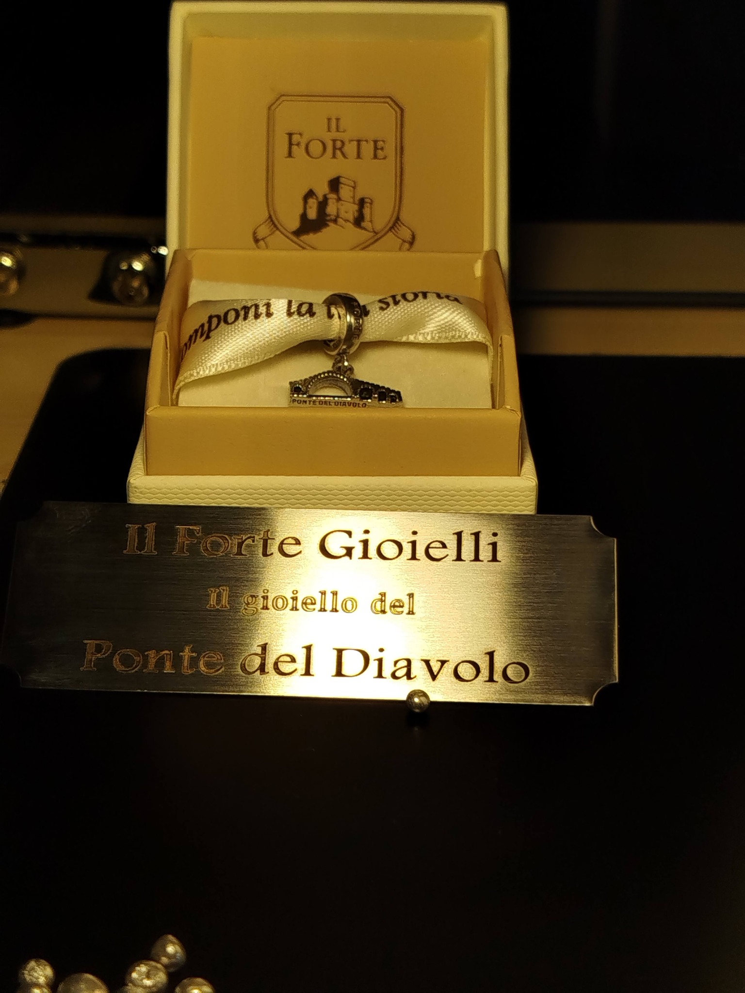 “Abbiamo creato – spiega il titolare Andrea Pellegrineschi – il brand “Il Forte gioielli” per valorizzare le icone del territorio, i suoi monumenti ma anche il commercio locale. Ci piace l’idea che una persona si porti con sé un simbolo locale. Il gioiello del Ponte del Diavolo si può acquistare presso la locale Pro Loco e in seguito al Museo della Linea Gotica. In via eccezionale era in vendita presso la manifestazione della Baldoria a Cerreto”.