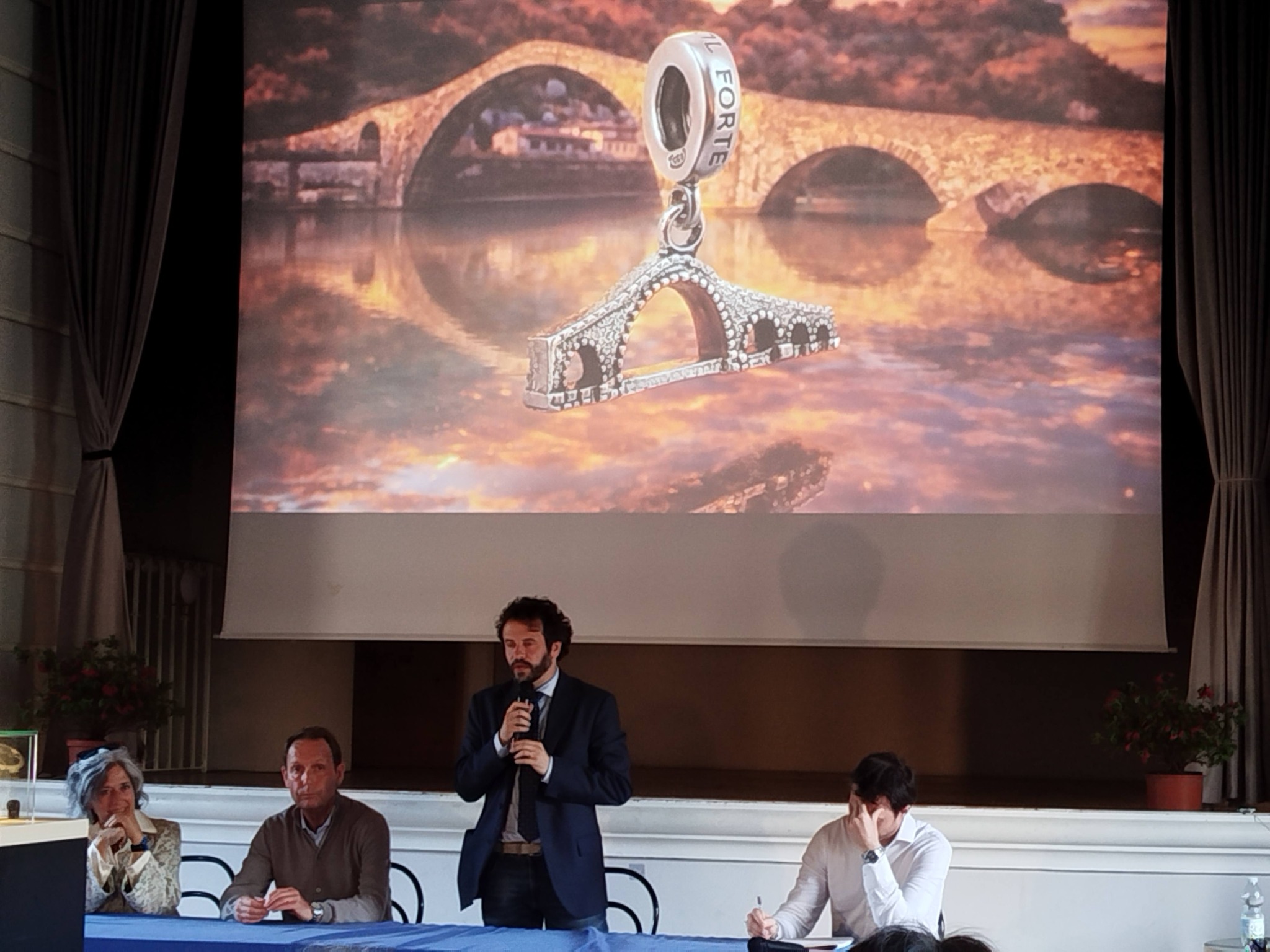 “In precedenza sono stati realizzati gioielli ispirati alla Rocca Ariostesca di Castelnuovo e al Duomo di Barga – ha esordito lo stesso Bertolacci nel corso della conferenza di presentazione – è stato quindi naturale da parte mia, dato che sono cresciuto a Borgo a Mozzano, proporre ad Andrea e Serena l’idea di un nuovo gioiello ispirato al Ponte del Diavolo. La realizzazione è stato parecchio complessa perché il monumento è molto particolare ma alla fine il risultato è stato molto bello”.