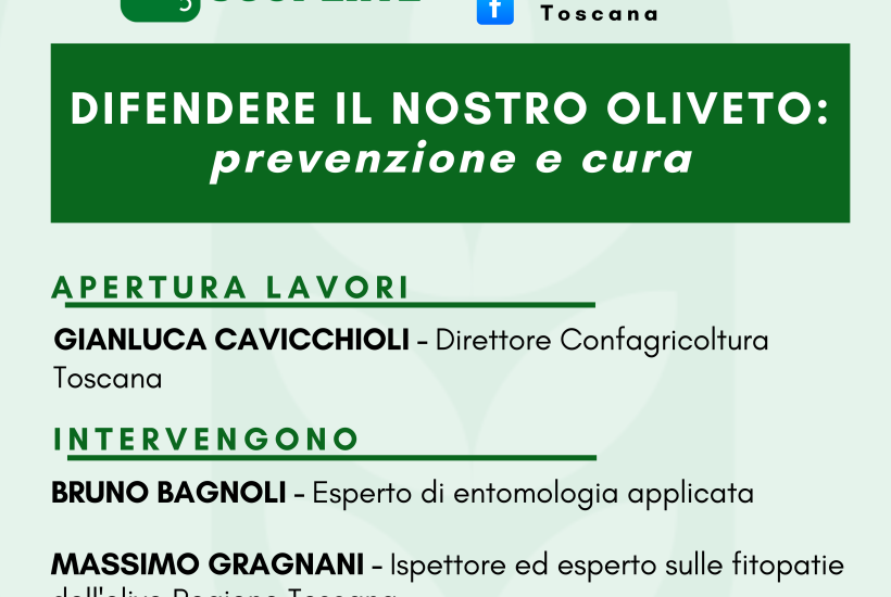 È dedicato a questi temi il nuovo appuntamento della rubrica di Confagricoltura Toscana “A carte scoperte” dal titolo “Difendere il nostro oliveto: prevenzione e cura”, in programma domani, giovedì 16 aprile, alle ore 14.30 in diretta live streaming sul canale YouTube e sulla pagina Facebook dell’associazione.