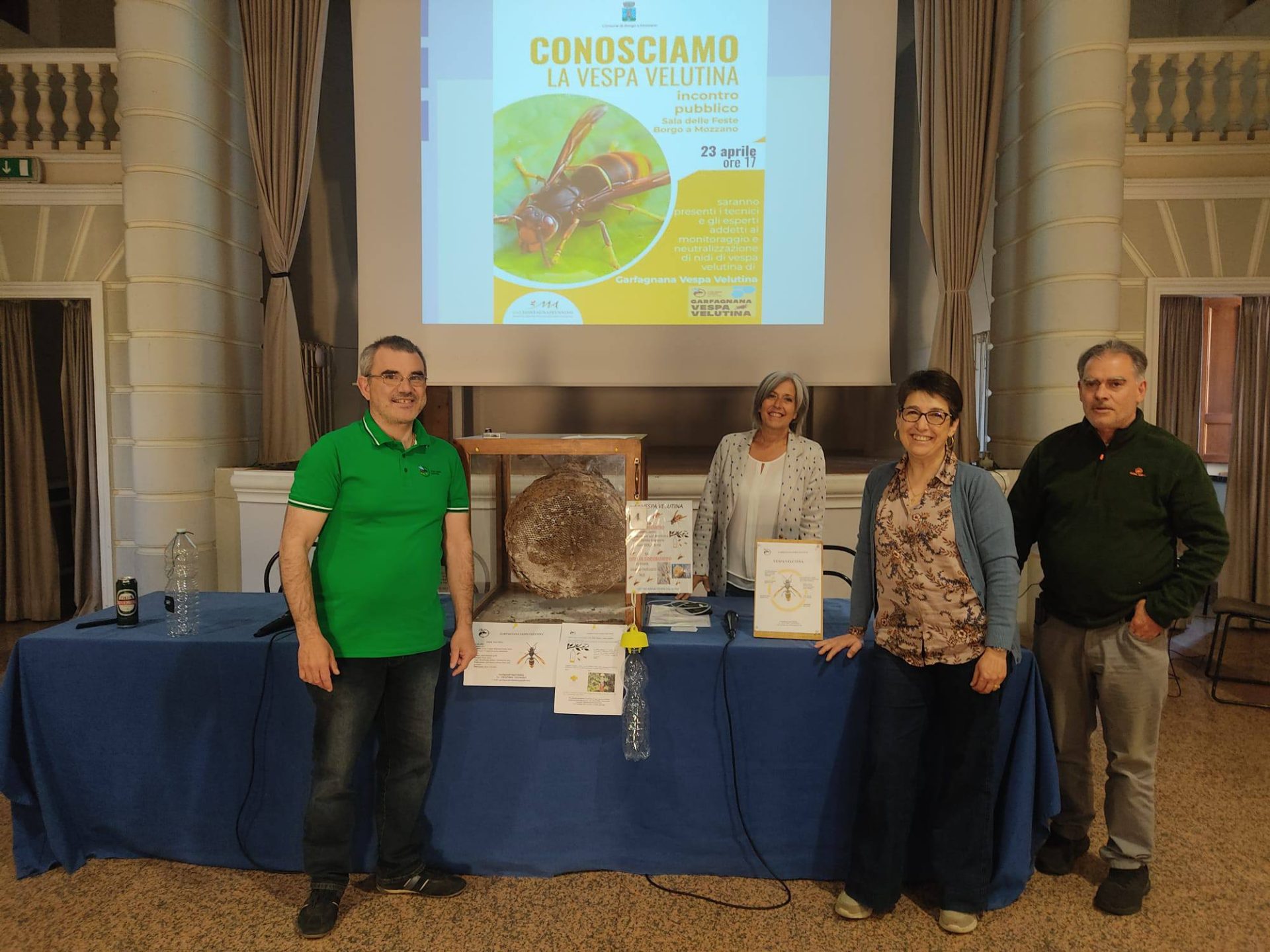 Successo per l’incontro di informazione e sensibilizzazione sul tema “Conosciamo la vespa velutina” organizzato giovedì 23 aprile presso la Sala delle Feste dall’amministrazione comunale di Borgo a Mozzano in collaborazione con l’associazione Garfagnana Vespa Velutina. Un incontro pubblico fortemente voluto dall’assessore all’ambiente Silvia Valentini e dall’assessore Simona Girelli, che rientrava nelle diverse iniziative organizzate nel periodo della Fiera dell’Azalea. Presente per l’amministrazione anche il vice sindaco Armando Fancelli, oltre a tante persone interessate alla problematica.