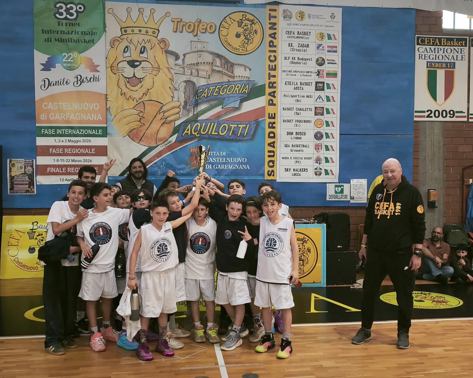 Sarà dunque toscana e più precisamente livornese una delle grandi favorite per la vittoria alla fase internazionale del torneo che si svolgerà dal 1° al 3 maggio. Il torneo ospiterà anche la 23esima edizione del Memorial Danilo Boschi ed è riservato alla categoria Aquilotti (nati 2015-16-17). Don Bosco ha sconfitto in finale Pallacanestro Endas Pistoia, terzo posto per Baloncesto Basket Firenze su Dany Basket Quarrata.